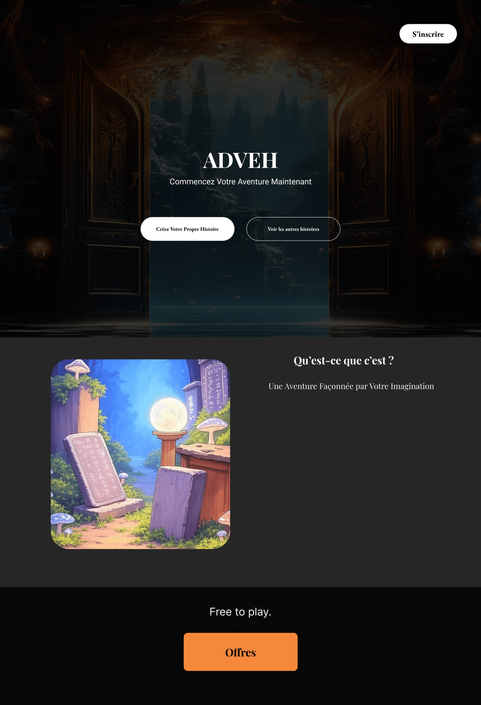 « Avec l’App Dont Vous Êtes le Héros, vous êtes l’auteur et le héros de votre propre histoire. Écrivez un simple début, un synopsis, ou laissez notre IA tout créer pour vous. Décidez du genre, de l’époque, des personnages, et même du ton. Thriller cyberpunk avec une touche d’humour ? Romance médiévale épique ? Tout est possible.«